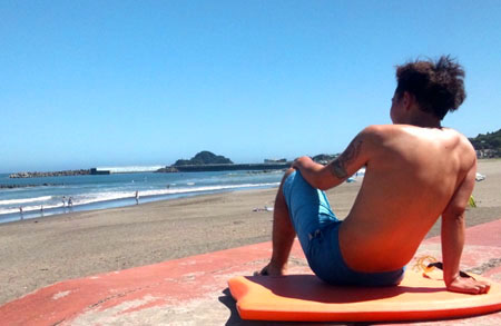 ブギボー持って沖の波を見てるフリして近くのギャルをチェックするチャーリー