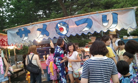 地元の花火大会の縁日で見かけた出店 サメつり インパクトあります