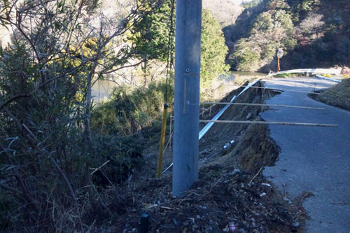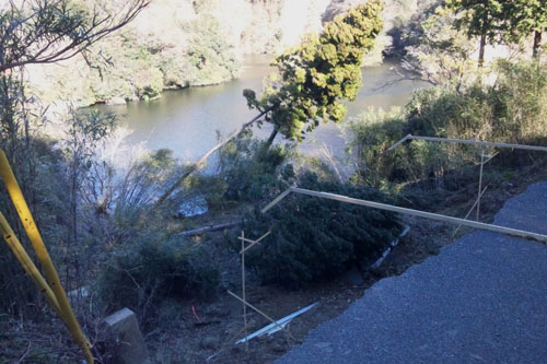 そこの湖畔道路が崩落してました