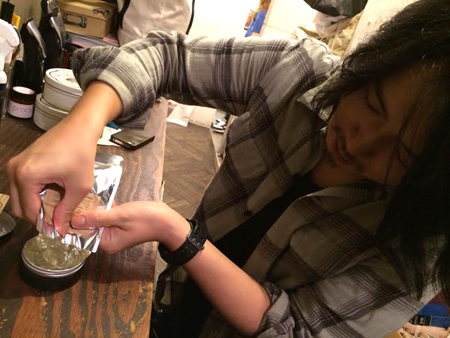 もったいないので 最後は自分の髪に
