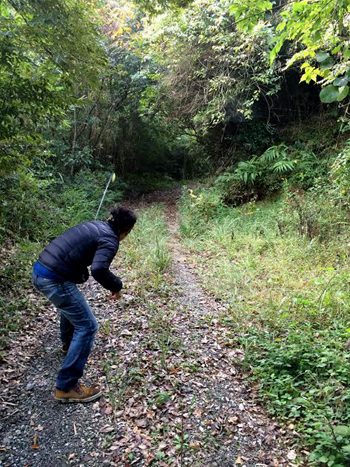 写真は忙しそうに飛び回ってるスズメ蜂を刺激しないように進むチャーリー