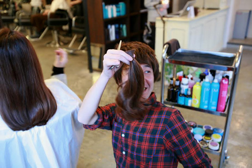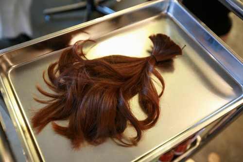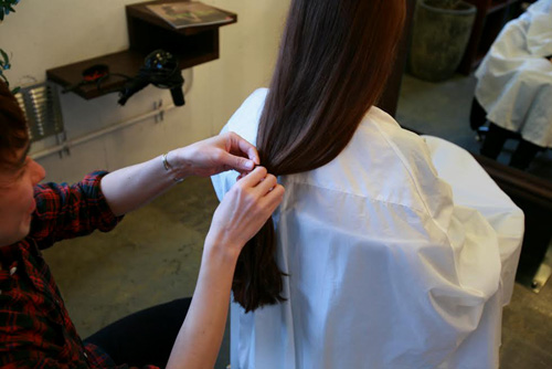 彼女はアーティストでもあるので 切った自分の毛を筆にして絵を描くのに使いたいと