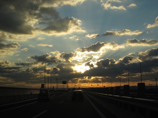 行きのアクアライン 日の出に向かう感じが好きです