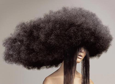 チリチリのヘアーをおもいっきり広げてビッグシルエットにデザインした雨雲ヘアーに対して
