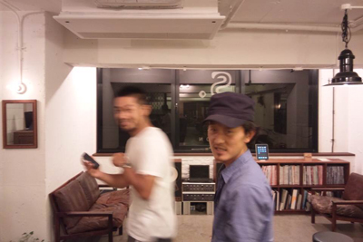 ハワイ焼けの植田社長と談笑中の友人ジェイコマ